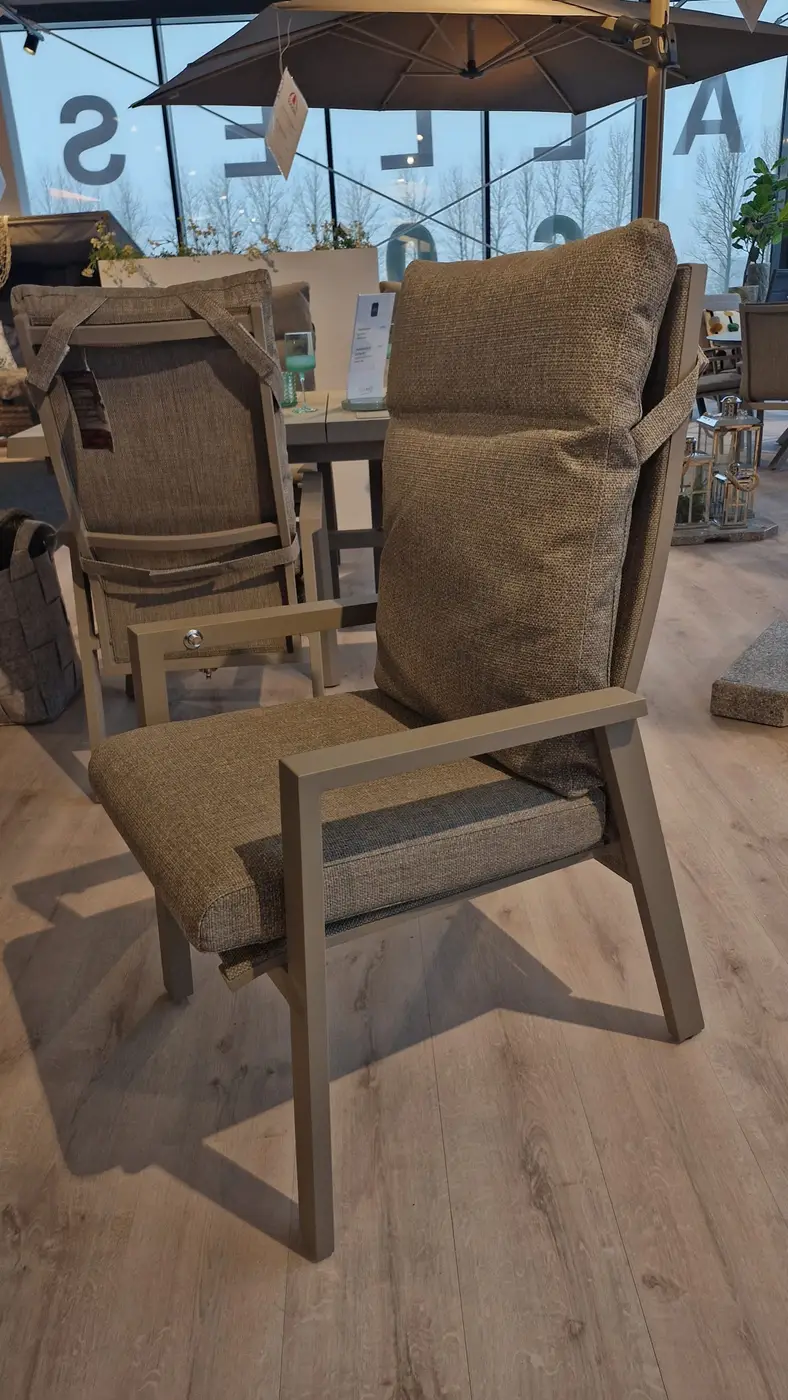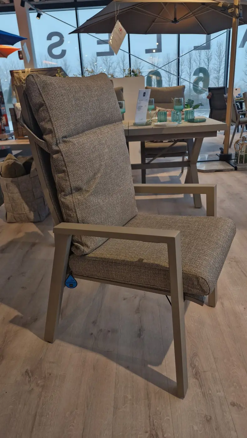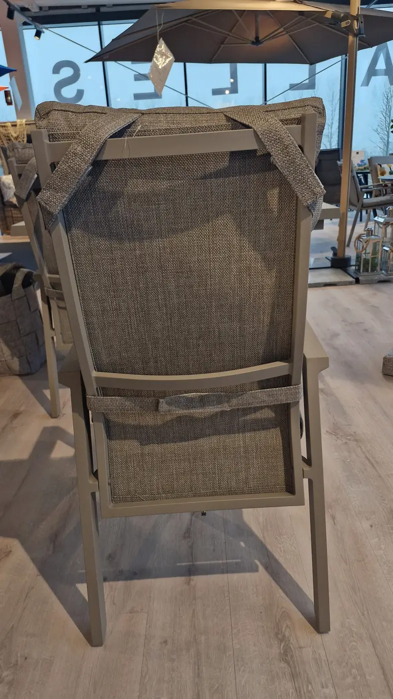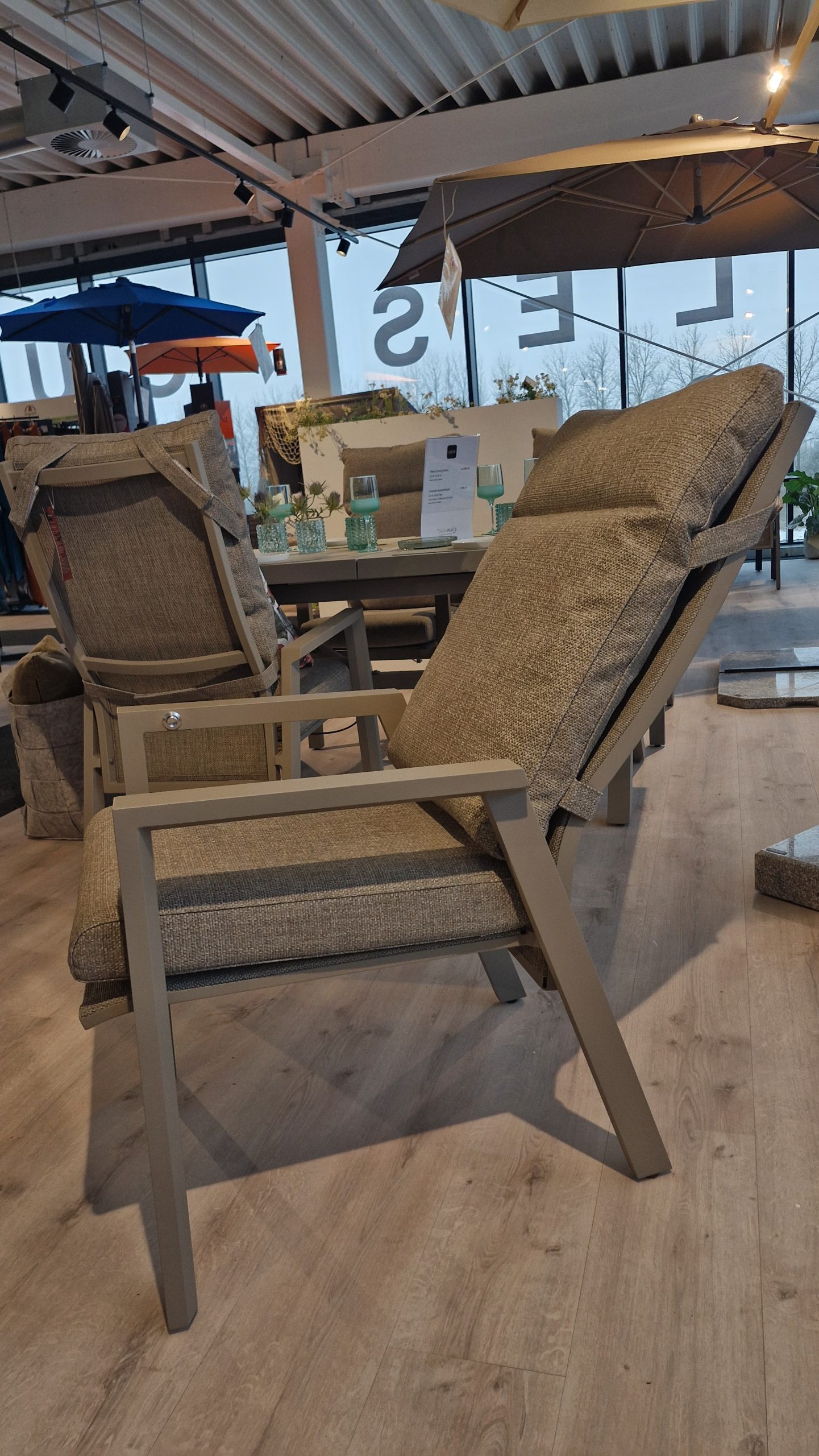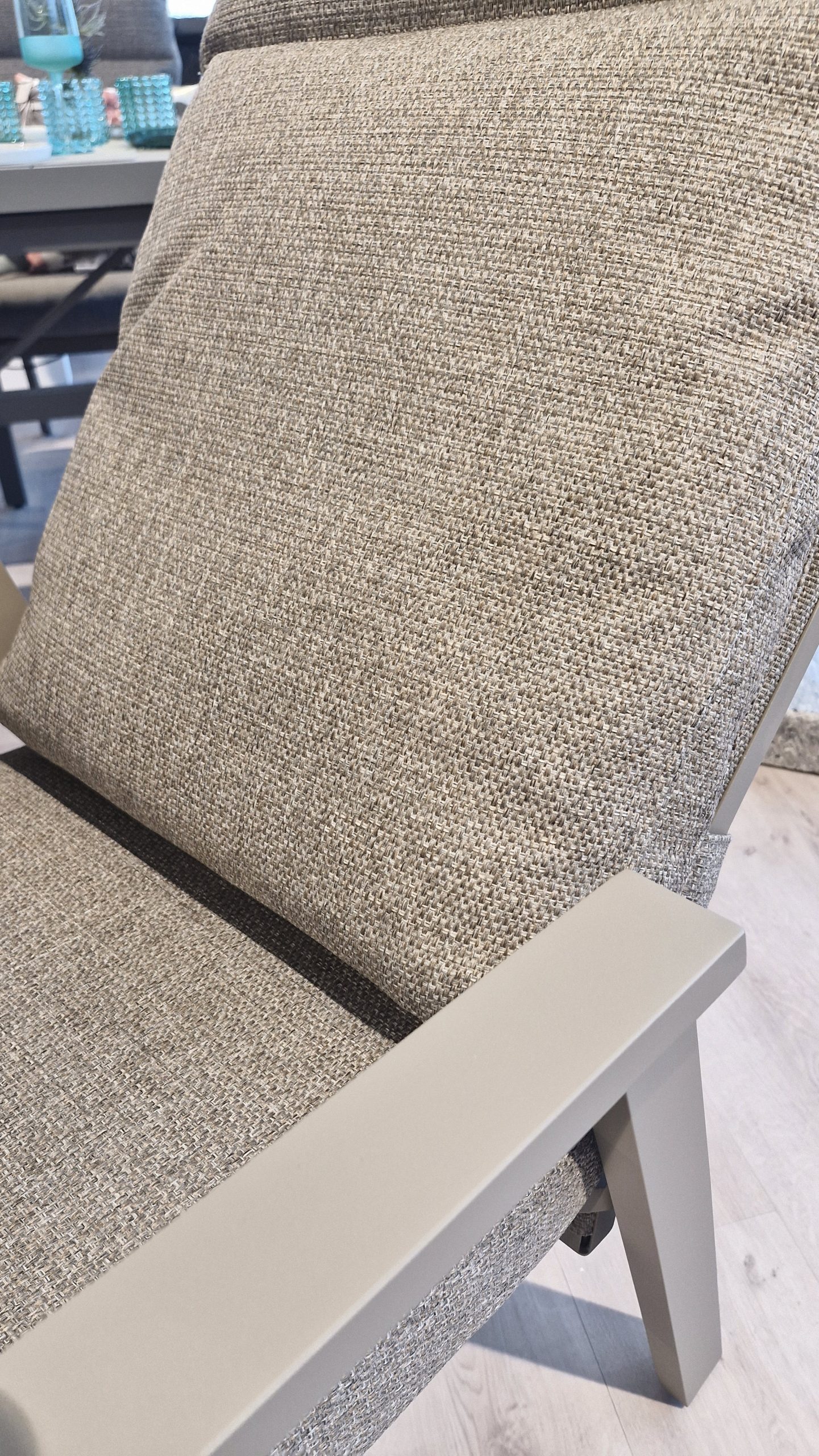 Dieser verstellbare Outdoorstuhl ist speziell für entspannte Stunden im Freien konzipiert. Die Rückenlehne ist hoch und lässt sich mehrfach verstellen. Im Lieferumfang enthalten ist eine besonders dicke Auflage in Farbe Greige. Das Gestell besteht aus langlebigem, pulverbeschichtetem Aluminium, wodurch der Stuhl wetterbeständig und pflegeleicht ist.